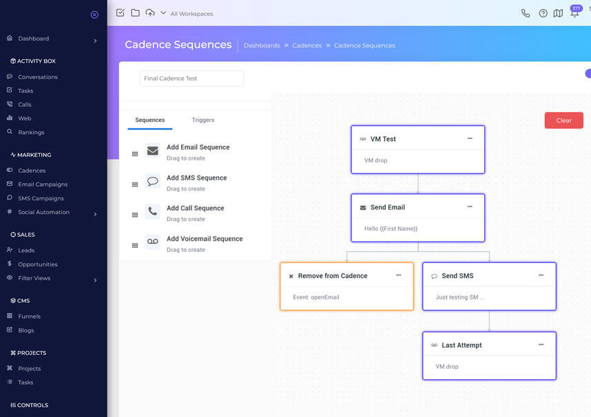 Easily create automated sequences spanning across email, SMS, voicemail, and scheduled calls. Implement cadences to lead generation forms or data pixels, triggering them through list load, form submission, or manual input.